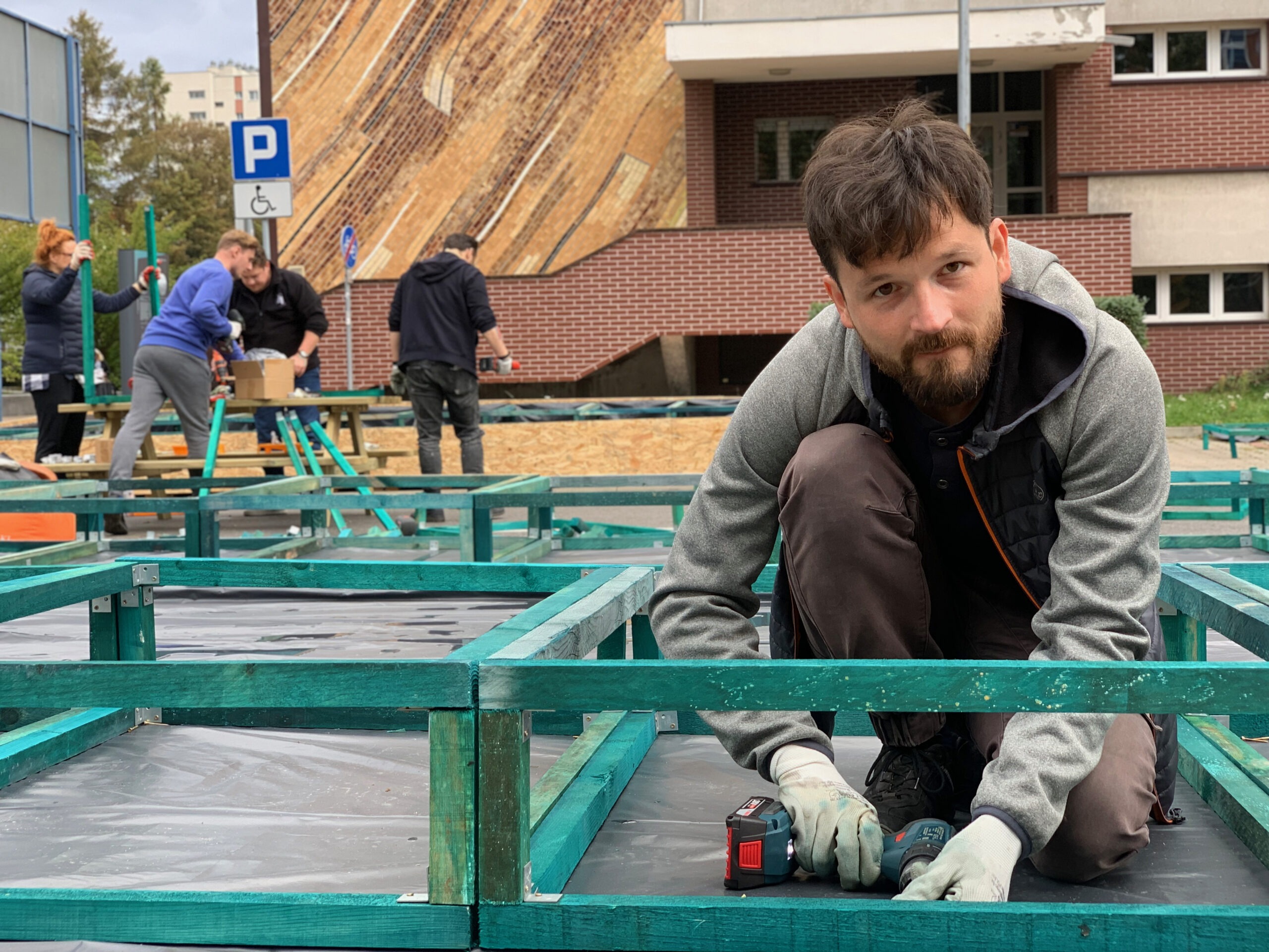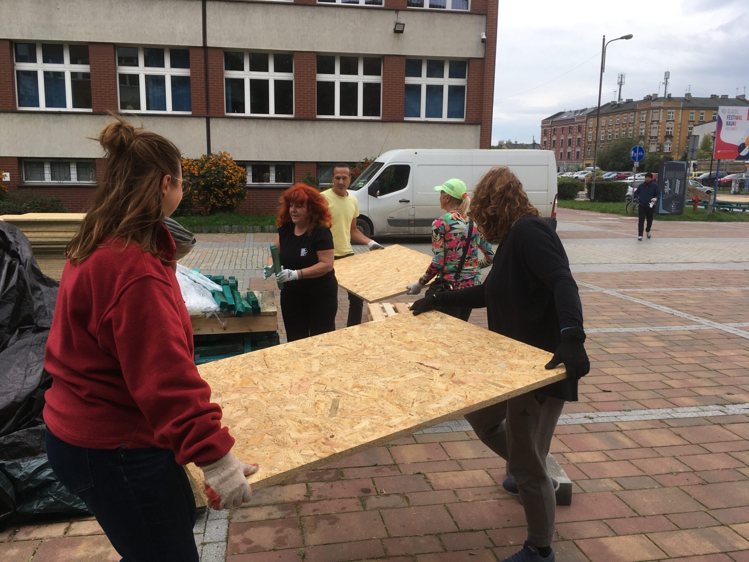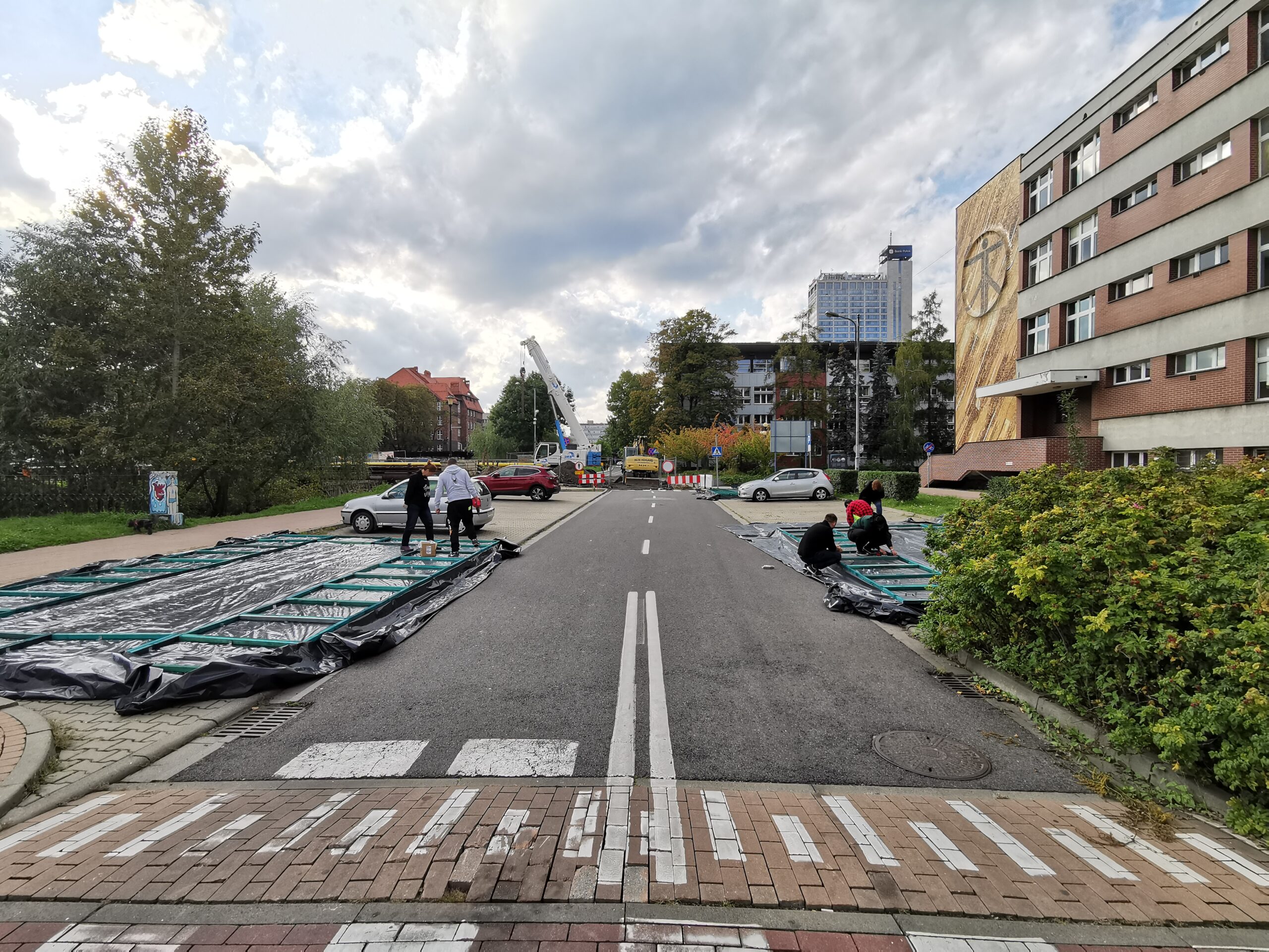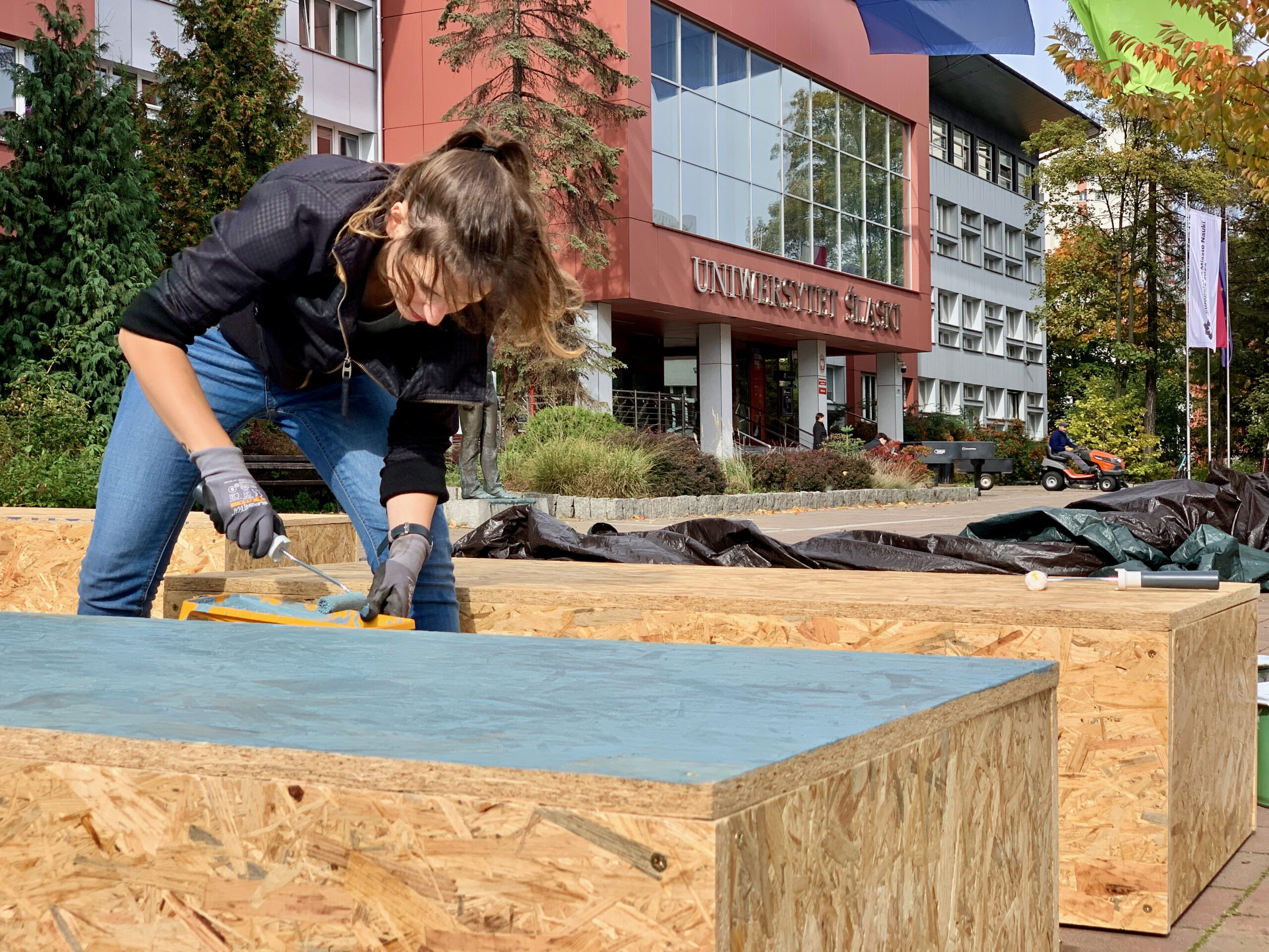 W kolejnym kroku przygotowaliśmy i zbudowaliśmy prototyp urbanistyczny zakładający zamknięcie części jezdni ul. Pańki i likwidację otaczającego ją parkingu. W jego miejscu i na deptaku przed rektoratem ustawiliśmy meble miejskie oraz społecznościowo zbudowaliśmy donice, w których później wspólnie zasadziliśmy zieleń. O tym, że ludzie związani z przekształcanym kampusem akceptują transformację, dowiedzieliśmy się dzięki wywiadom i spacerom badawczym. Jeden z obchodów był realizowany w towarzystwie osoby głuchoniewidomej, która zwracałam uwagę na kwestie ważne z perspektywy jej potrzeb. Zebrane informacje posłużyły nam do zaprogramowania koncepcji zmian docelowych oraz przygotowania instrukcji dla podobnych przekształceń mobilnościowych.