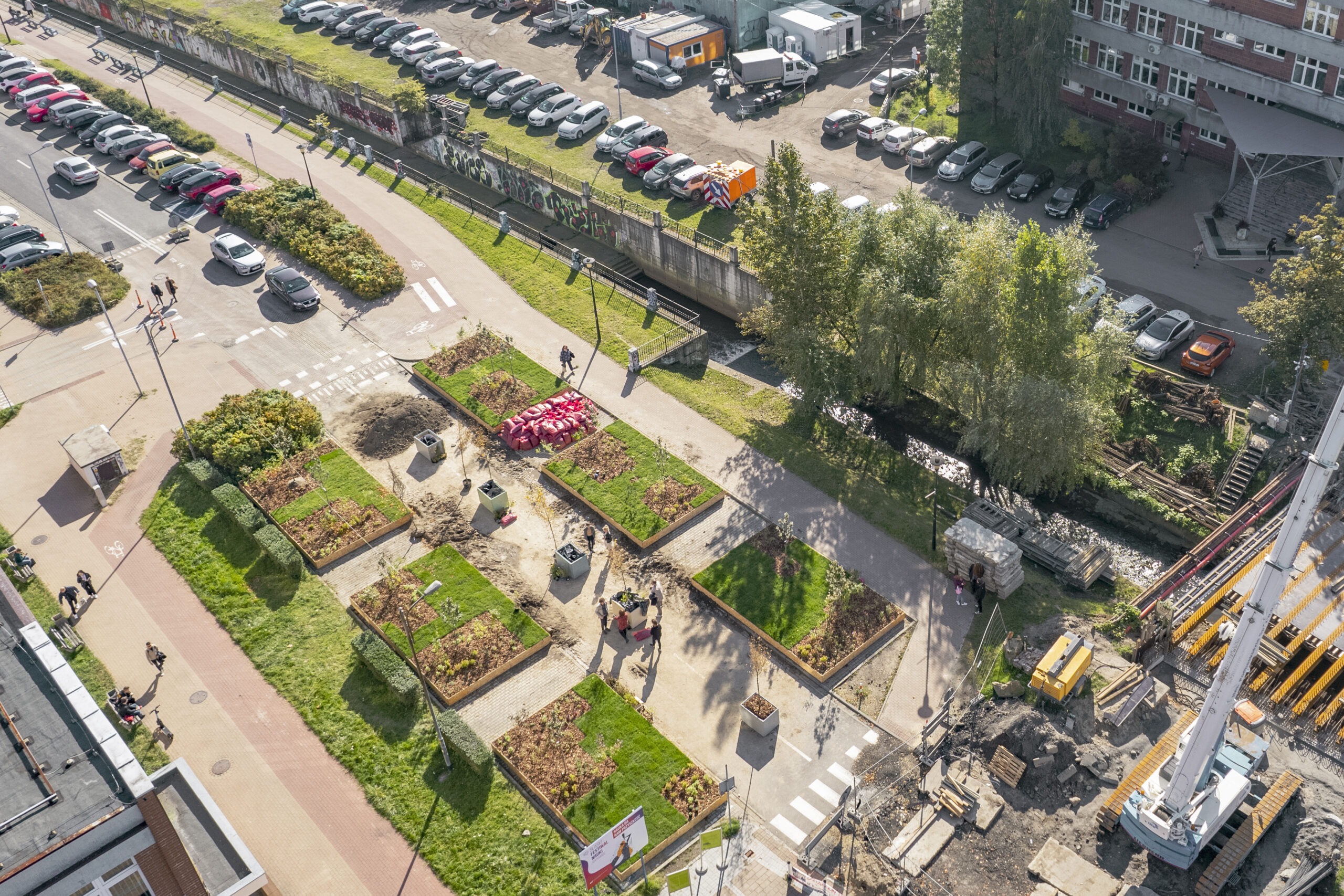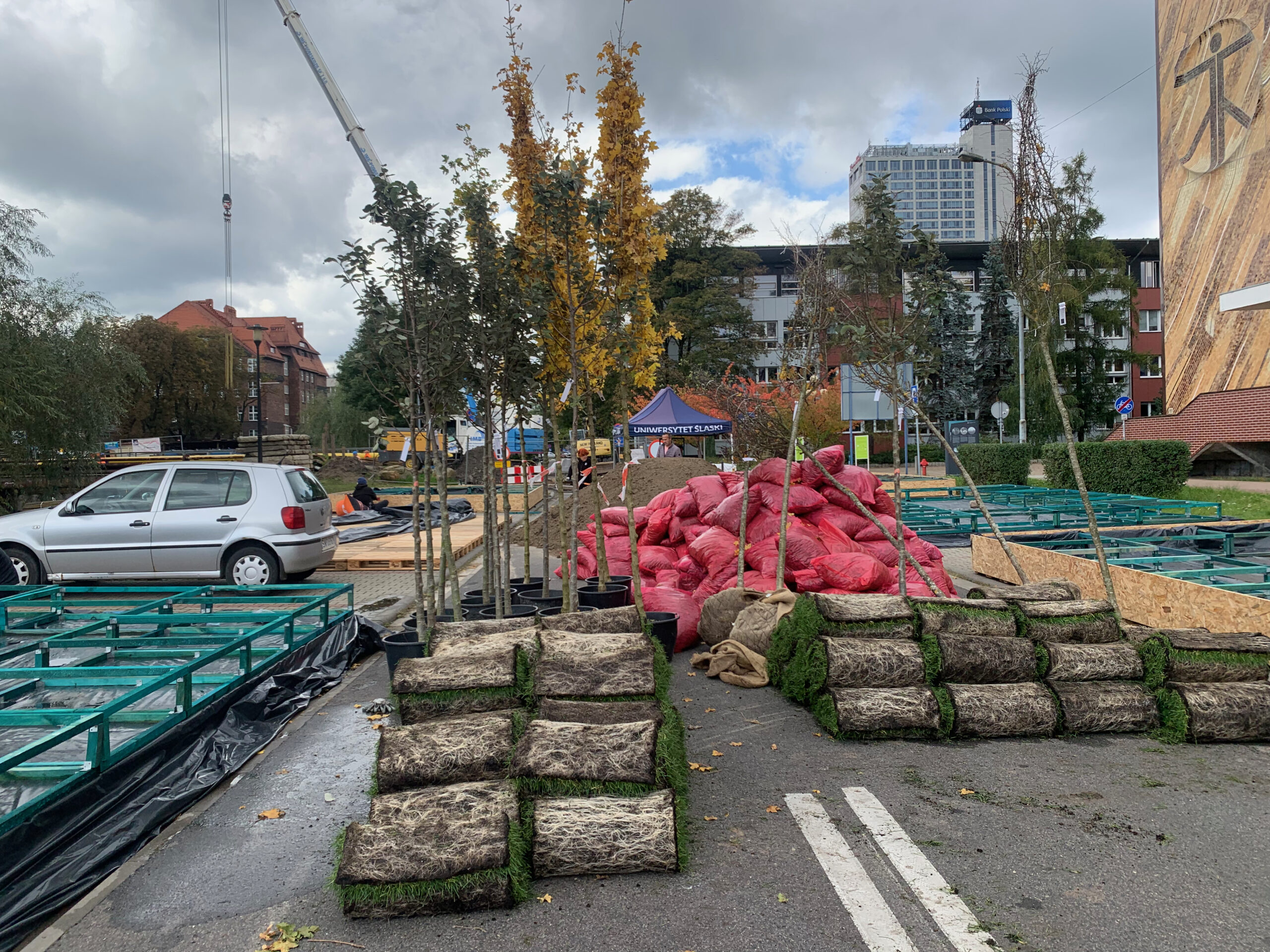 - Zastąpienie parkingów elementami zieleni oraz małej architektury